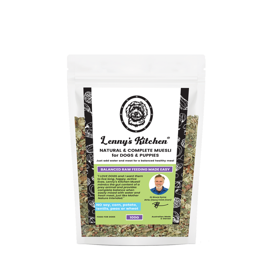 Lenny’s Kitchen Natural & Complete Muesli is formulated in conjunction with renowned and respected Australian Vet, Dr Bruce Syme. For Dogs and Cats, all Life Stages.