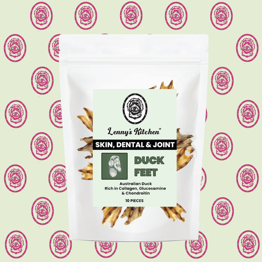 Air Dried Australian Duck. A by-product of the meat industry. High in Collagen, Glucosamine and Chondroitin to support Skin, Teeth & Joints. Great occupier chew, and is a great finishing touch for a meal. Check out our Meal Inspo.