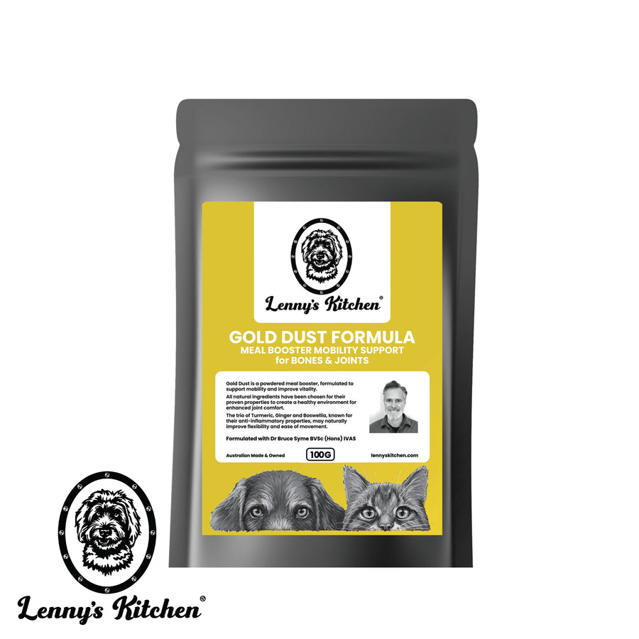 Gold Dust Formula is a powdered meal-booster designed to support mobility in Adult pets.