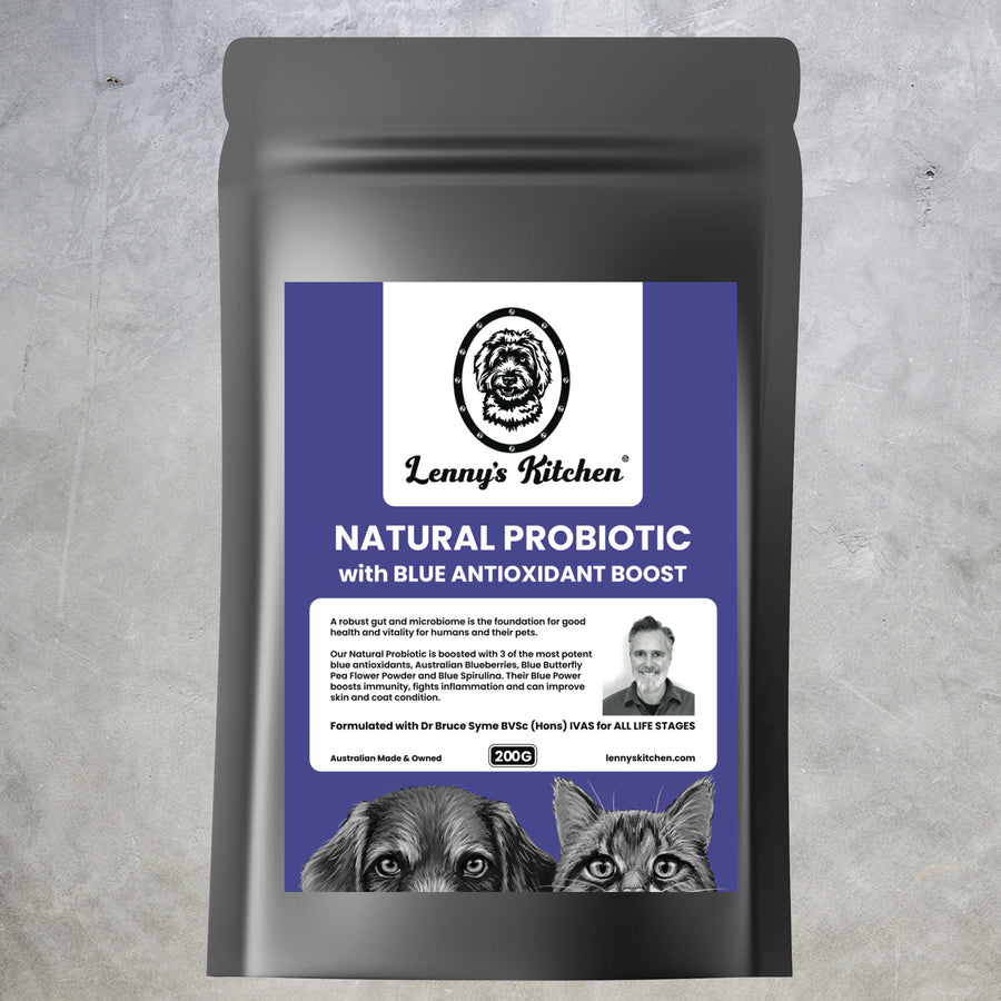 A unique approach to Probiotics. A Multi-strain Probiotic to balance and boost the healthy bacteria in your gut microbiome is boosted with three of most potent blue Antioxidants, Australian Organic Blueberries, Blue Butterfly Pea Flower Powder and Blue Spirulina. Their blue power boosts immunity, fights inflammation and can improve general health, digestion, skin and coat.