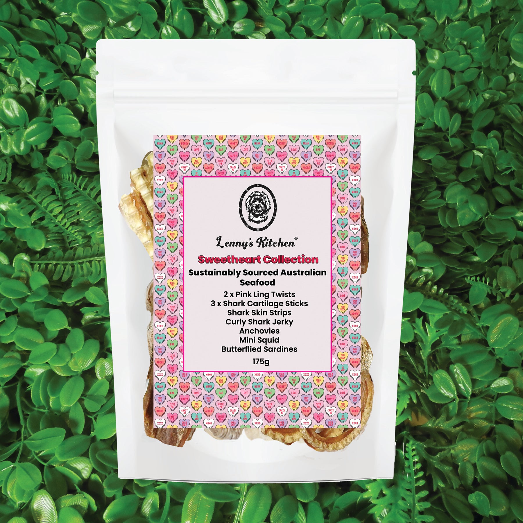 Our Sweetheart Ocean Selection is a great way for your Dog to enjoy sustainably sourced Australian Seafood treats. These treats can also be purchased in100g single ingredient packs.